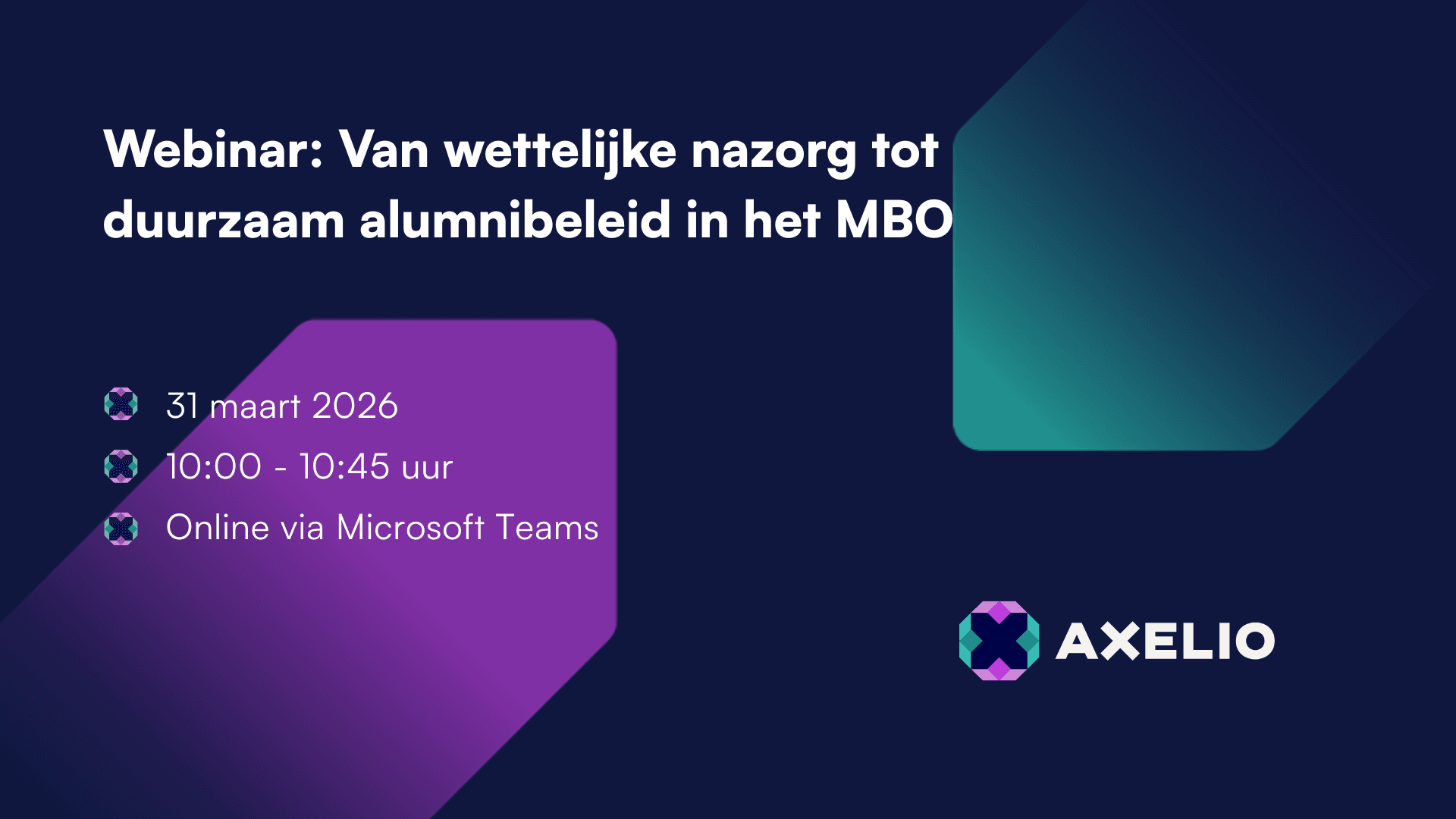 Het webinar richtte zich op professionals die betrokken zijn bij beleid, uitvoering of ondersteuning van nazorg, alumni en LLO binnen het mbo, waaronder: