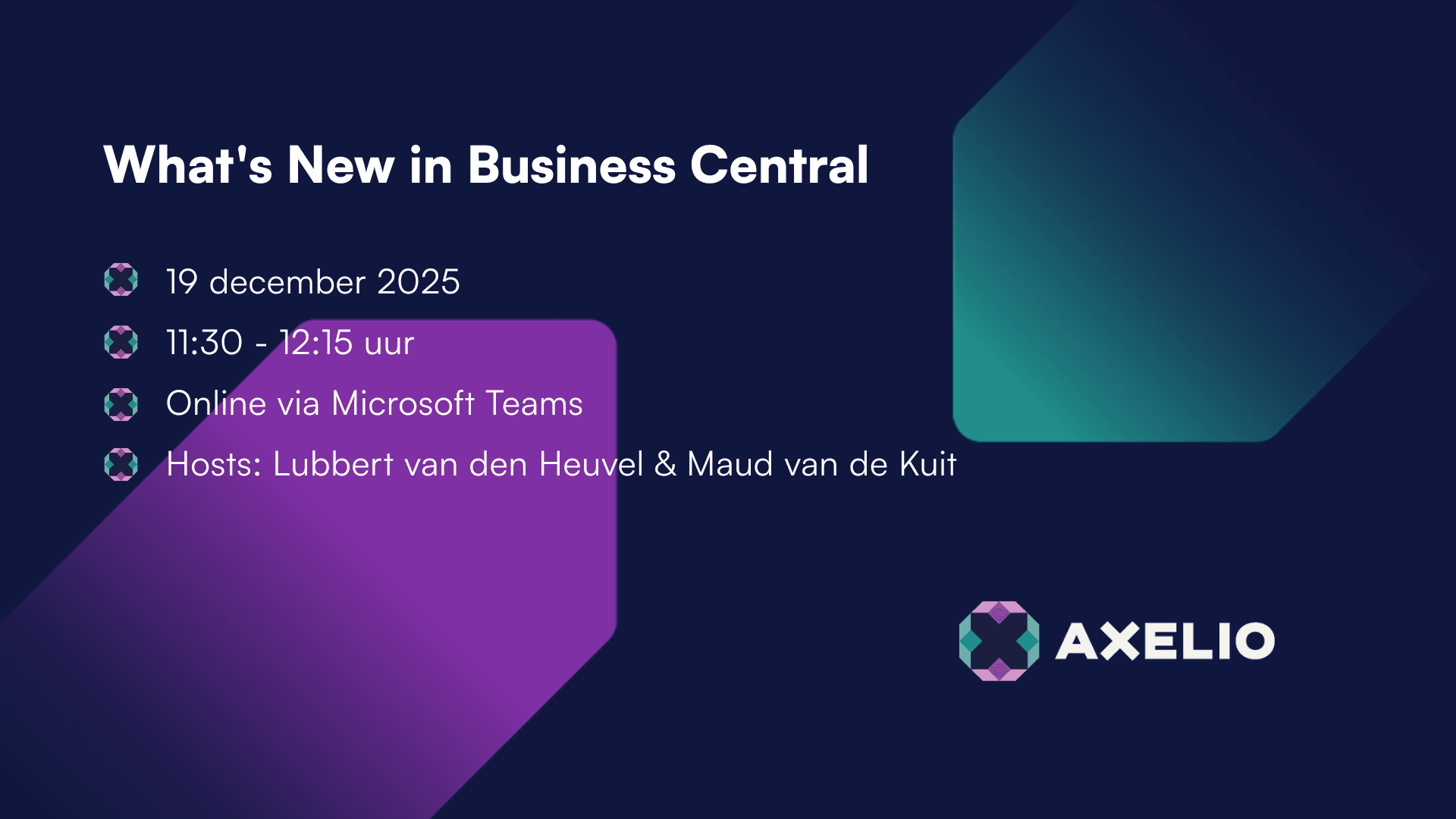 Wij hebben deze voor jou doorgenomen en presenteren de belangrijkste ontwikkelingen in een online webinar van 45 minuten. Onze ERP-specialisten Maud van de Kuit & Lubbert van de Heuvel blikken daarnaast terug op Directions EMEA, het evenement van, voor en door Microsoft-partners.